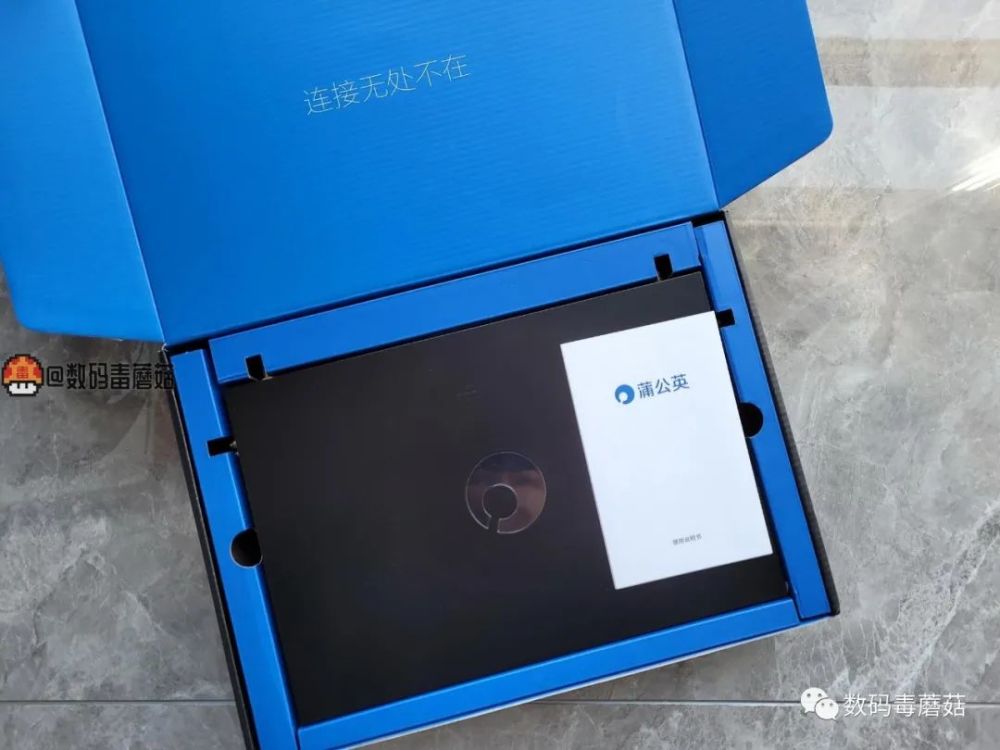 翻开包装盒内部是蓝色的,“连接无处不在”的slogan非常显眼,有没有点像kindle的包装配色?