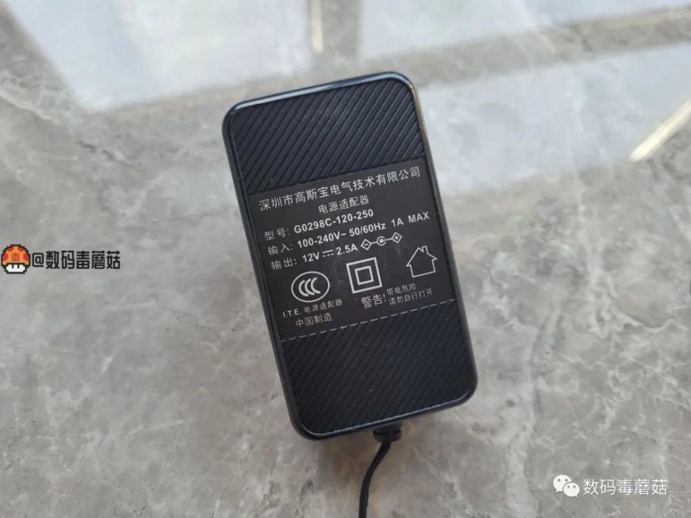 自带的电源是12v 2.5a,掂量着份量挺足,用料应该不错。