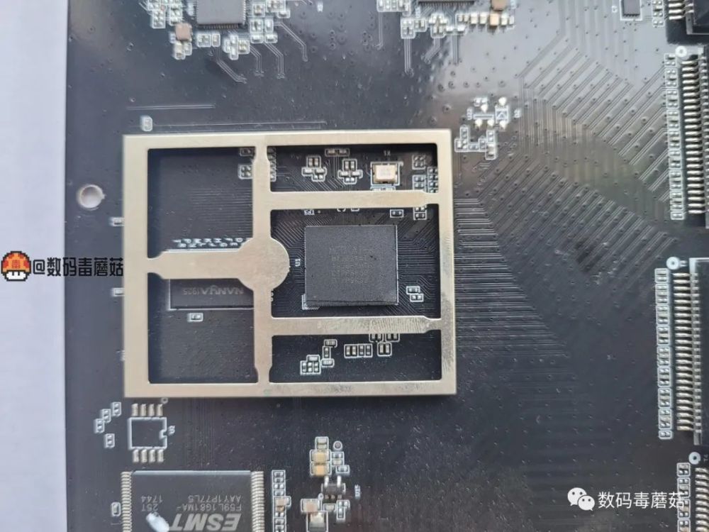 主板背面一览。大部分零部件都在正面。