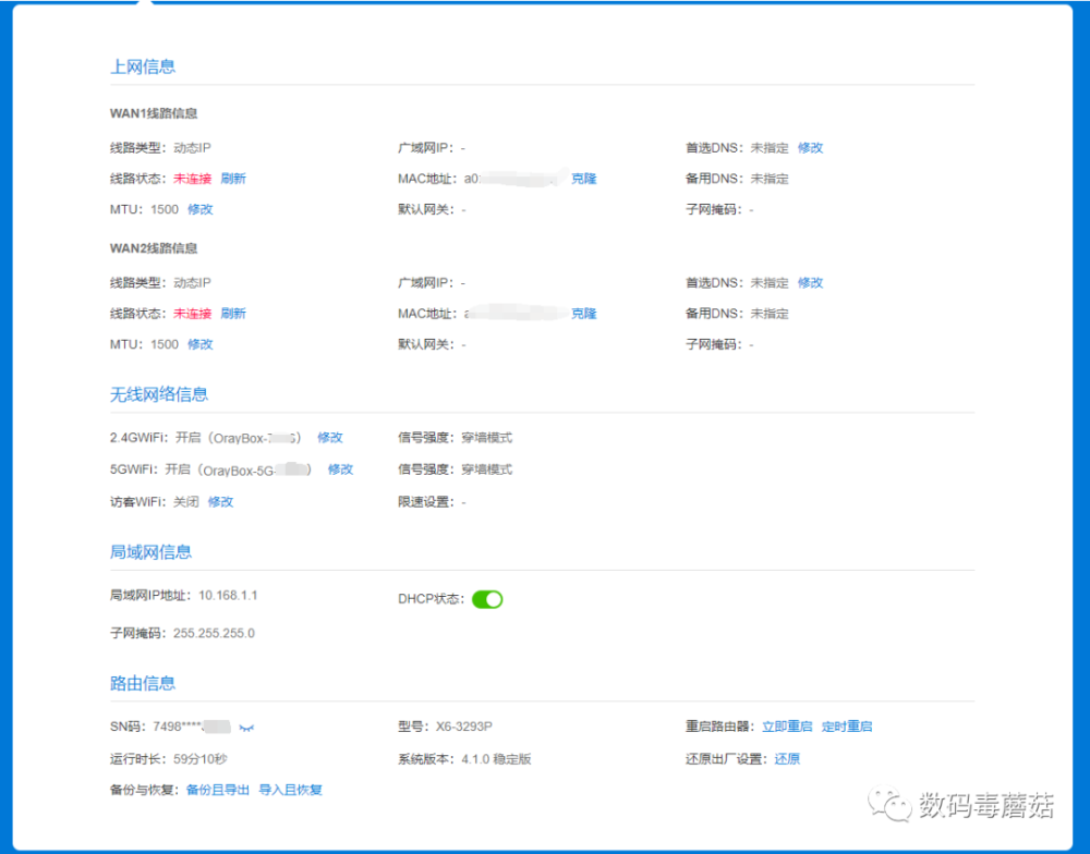 于是我开始物色一款支持双宽带接入的路由器。搜了一圈,发现蒲公英X6提供了原生双宽带支持,而且还是8网口,可以把交换机都省掉,正合我意!于是厚着脸皮找朋友要来这个路由器~