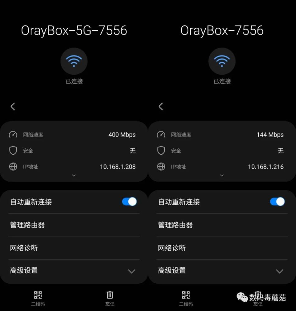 经过一通设置之后,连上路由会发现信号的确十分强,但是无论在远处测试还是贴在路由器上测试,最高网速都在300M左右。从手机端看了一下连接速率,发现5G速度只有400Mbps,2.4G只有144Mbps,这是为什么呢?