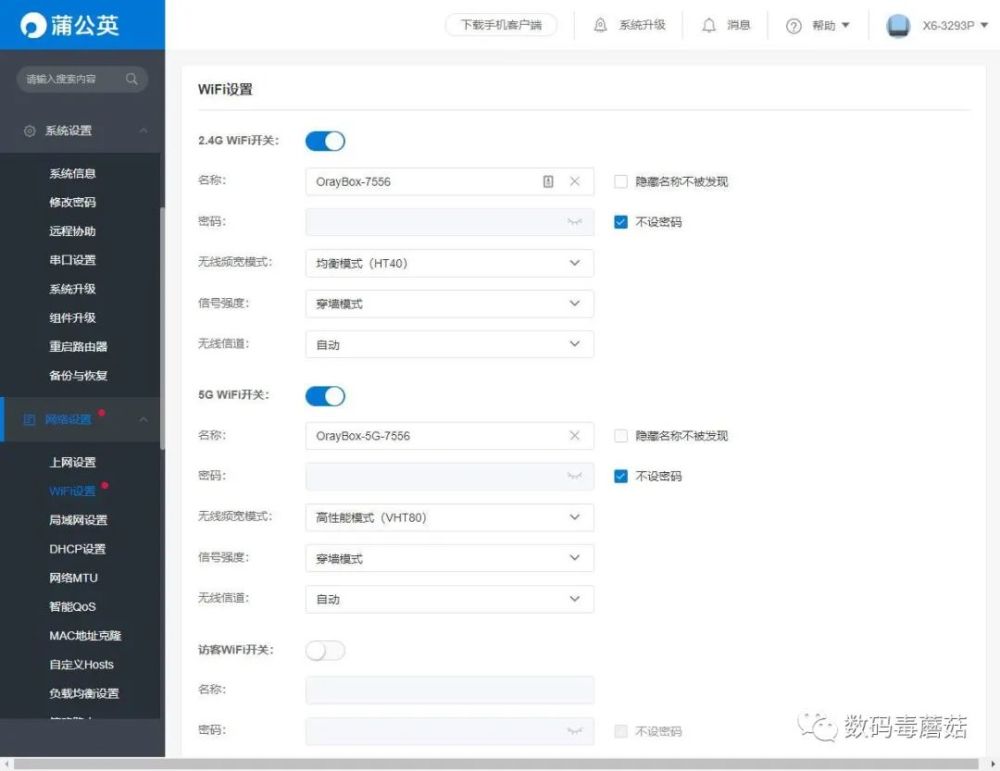 MT7603EN+MT7612EN的无线方案,分别提供300M(2.4G)+867M(5G)的速率,不支持WiFi6略有遗憾,估计要放到下代升级了。
