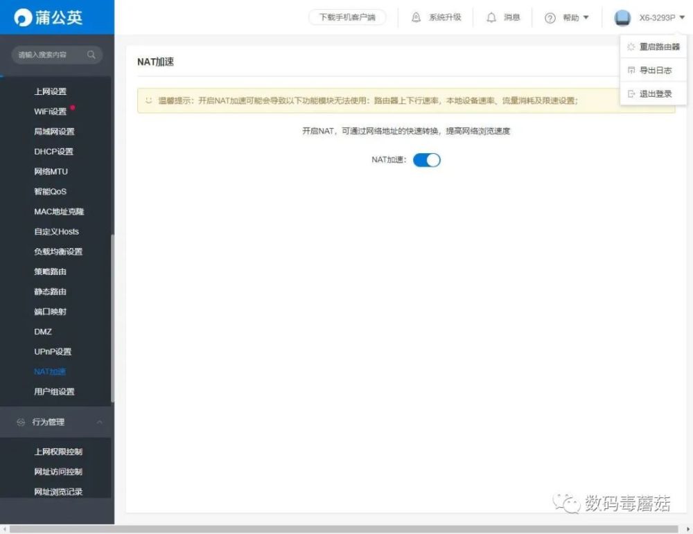 设置2在这里,要开启NAT加速,才能跑得更快。上图的温馨提示说,开启之后可能会导致部分模块无法使用,但是实际我看是可以用的。