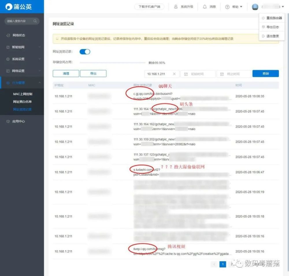 云端还有行为管理功能,比如可以通过翻看网址浏览记录,了解到家里熊孩子是开电脑还是玩手机、看电影还是玩游戏,全部一目了然……不好好学习?直接加进黑名单里去。