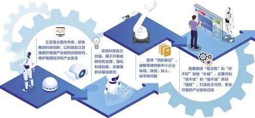 一是围绕“有没有”和“好不好”加快“补链”。要重点聚焦基础材料、核心元器件、关键设备、工业软件等“卡脖子”技术,发挥新型举国体制优势,整合科技力量联合攻关,因“技”制宜,分业施策,采取“挂图作战”“揭榜挂帅”“赛马”等有为政府和有效市场相结合的方式,推动产业链上中下游全链条协同创新,尽快攻克产业链关键节点核心技术,切实补齐短板。特别要在对外依存度高、安全风险隐患大的领域,构建必要的“备胎”和多元化供给来源,确保产业链供应链在关键时刻可以实现自我循环,在极端情况下能够正常运转。